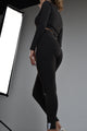 Set κολάν λαδί ματ με υφαντό σήμα πίσω και στο πόδι